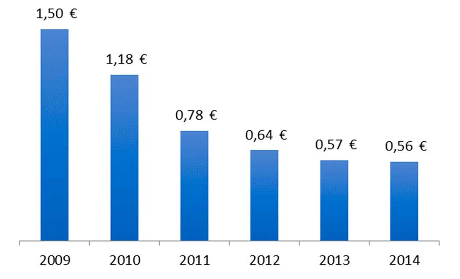 GRÁFICO 5 - Descenso de la inversión en adquisiciones por habitante 2009-2014 |