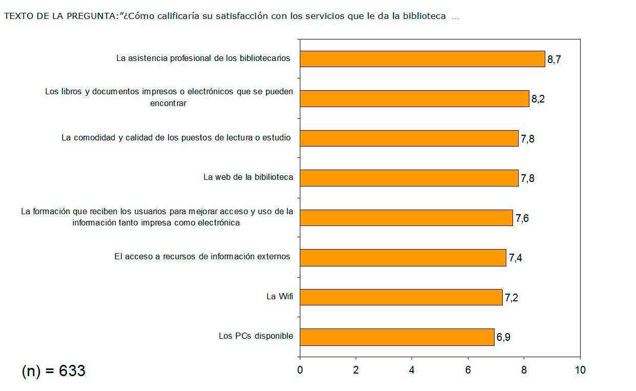 GRÁFICO 6 - Satisfacción con los servicios de la biblioteca (Escala de 0 a 10) |